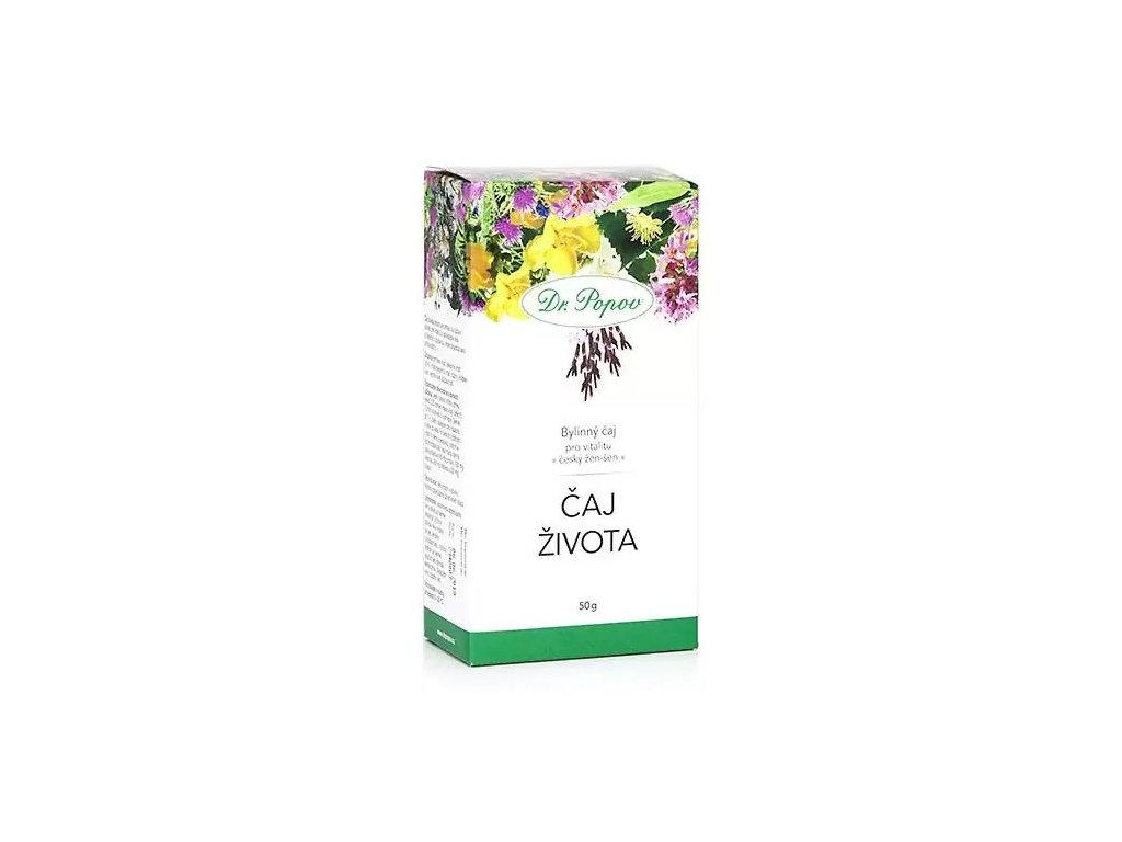 Čaj života je bylinná směs, pro svoje účinky přezdívaná jako „český žen-šen“. Obsahuje kopřivu a růžový ibišek, které přispívají k celkové vitalitě a osvěžení těla. Sporýš a pampeliška působí jako antioxidanty.