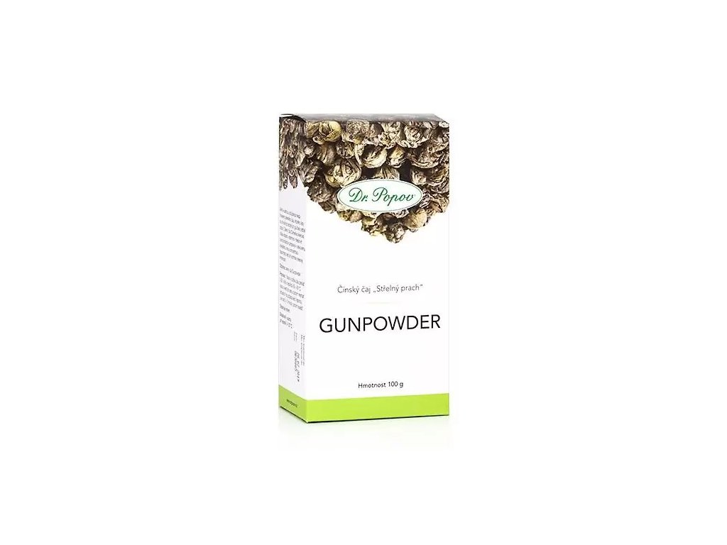 Gunpowder Dr. Popova je velmi kvalitní a oblíbená třída čínského zeleného čaje, jehož listy jsou svinuty do drobných kuliček (odtud pochází název čaje). Zelený čaj díky obsahu vitamínů, tříslovin a antioxidantů povzbuzuje, osvěžuje a přispívá k dobré koncentraci. Zároveň pomáhá mít pod kontrolou váhu.