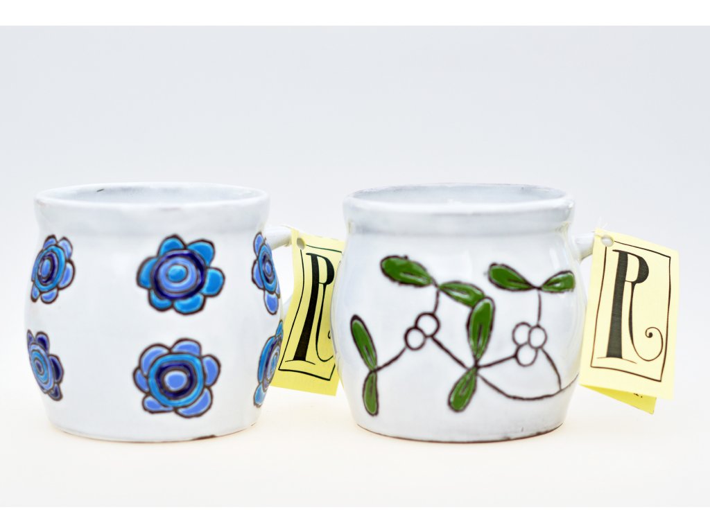 Hrníček na střední kávu, či čaj z chráněné dílny Diakonie Rolnička - Soběslav. Chráněná dílna se zaměřuje na rukodělnou výrobu z keramiky, dřeva a textilu a zaměstnává lidi s mentálním i zdravotním postižením. Výrobky dílny v sobě snoubí řemeslnou zručnost a originální výtvarný výraz.