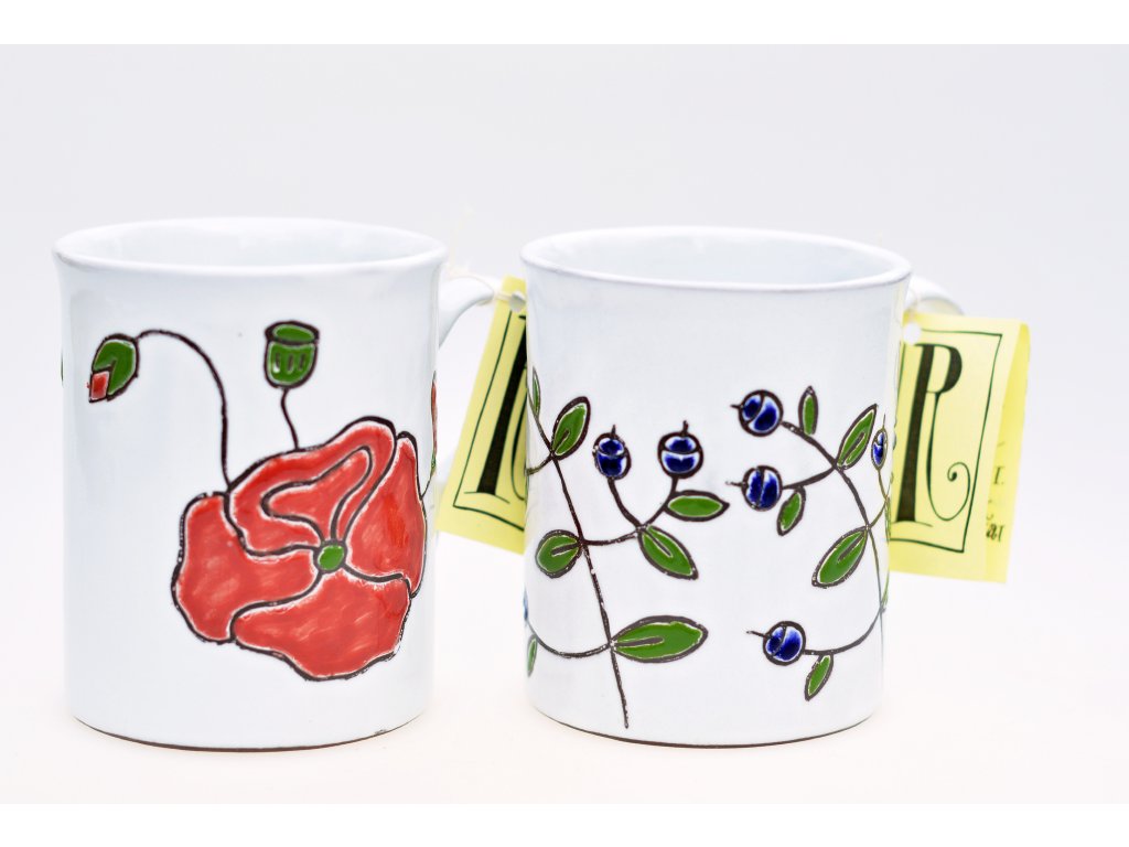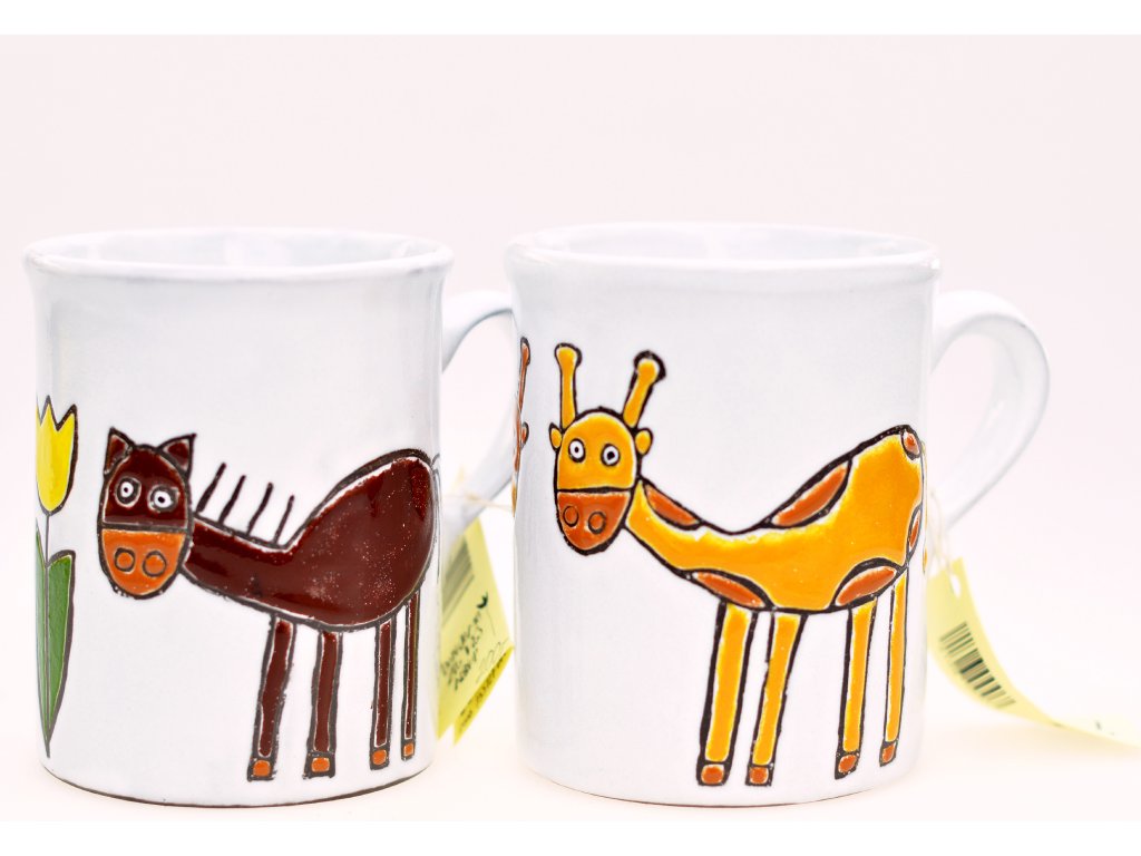 Hrníček na velkou kávu, či čaj z chráněné dílny Diakonie Rolnička - Soběslav. Chráněná dílna se zaměřuje na rukodělnou výrobu z keramiky, dřeva a textilu a zaměstnává lidi s mentálním i zdravotním postižením. Výrobky dílny v sobě snoubí řemeslnou zručnost a originální výtvarný výraz.